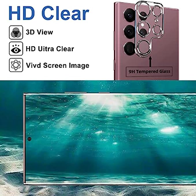 • 【9H hardness& 3X Stronger Scratch resistant】Upgrade 10X Military Shockproof with edge strengthening design, Highly durable Resistant Tempered Glass can Effectively Protect Your Galaxy S22 Ultra from Unwanted Scuffs and Scratches by Keys and Some Other Hard Substances. ✔【4 Pack】2 Pack Screen Protectors+2 Pack Camera Protector are both made of High-quality Tempered Glass for Samsung Galaxy S22 Ultra (6.8").