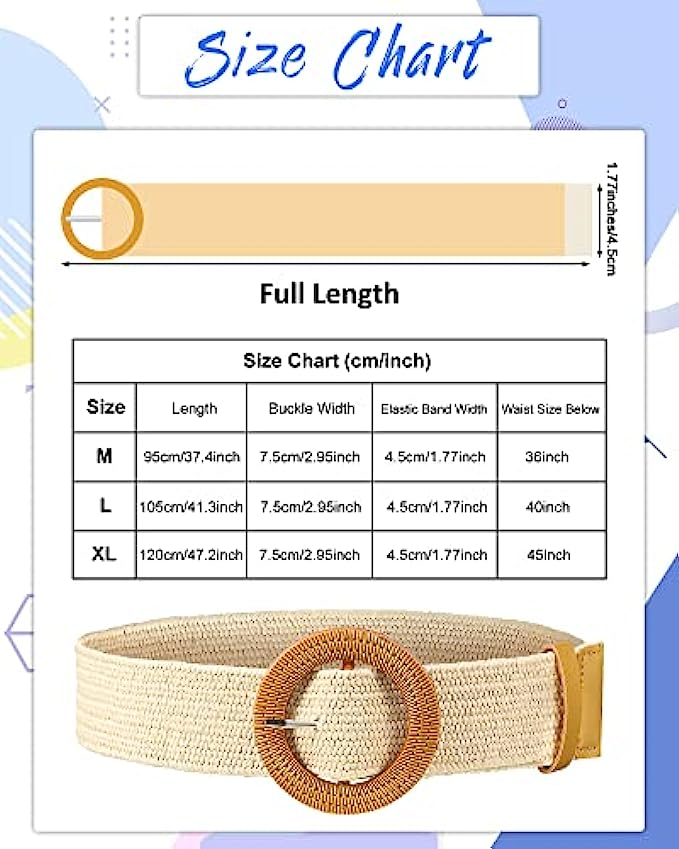 • Matching with: straw woven elastic waist belt are chic accessories for both casual and formal clothes, such as dresses, long shirts, coats, evening dresses and more, you can choose different one to match with different outfits, garments with this type of embellishment can make you more elegant