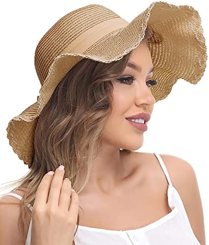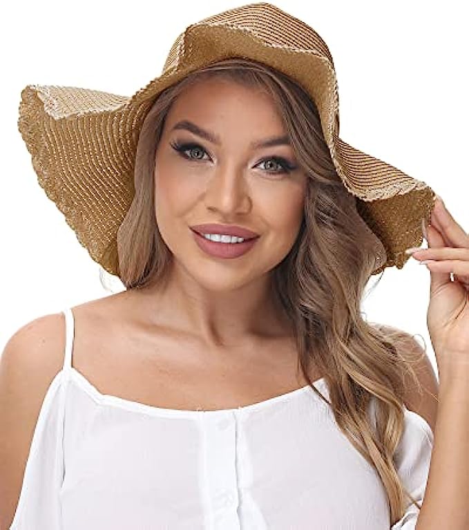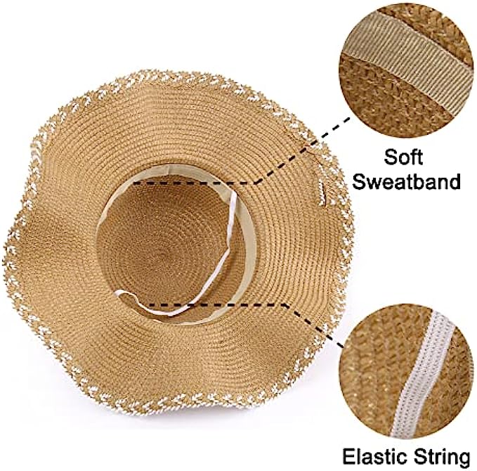 Straw Imported Elastic closure Hand Wash Only [ONE SIZE FITS MOST] Style 1 : brim 3.15’’ (8cm), height 4.33’’ (11cm), circumference 21.26-22.83’’ (54-58cm). Style 2: brim 4.72’’ (12cm), circumference 22.05-23.62’’ (56-60cm). One size fits most women, girls and ladies. There is a elastic string that makes it size up better [DURABLE STRAW FABRIC] Double woven straw hat is durable and not easily lose shape. It can block harmful UV rays in order to prevent skin sunburn. Lightweight and breathable, keep your head cool all day [WIDE BRIM & BOW TIE] Floppy brim makes you more charming and adorable. Soft linen bow tie makes the beach hat feature personal and fashion. Bringing you shade and beauty in the hot and boring summer