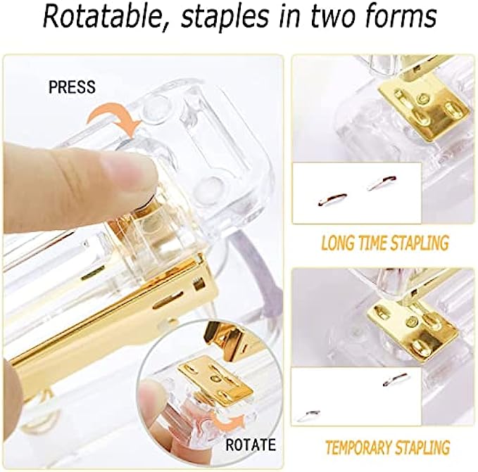 • 【Robust & Durable】Our stapler, long tail clip, scissors, ruler, pen, staples made of high-end acrylic and gold-plated metal material, transparent and shiny like glass, naturally elegant and beautiful, sturdy and durable.These gold desk accessories are perfect for home, school, and office decor and use.