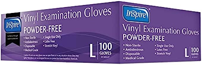 Inspire Stretch Vinyl Exam Gloves | THE ORIGINAL Quality Vinyl Gloves Disposable Latex Free Medical Gloves Cleaning Gloves