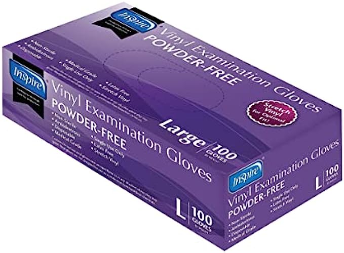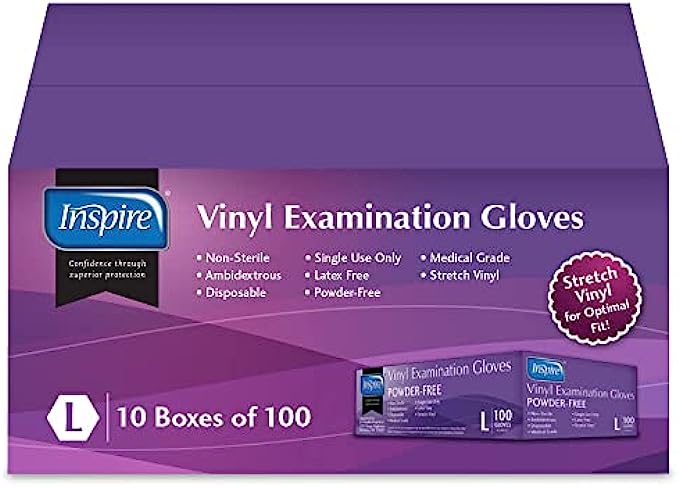 • PRE-COVID QUALTY: Remember when disposable gloves were strong, rip free and durable? These Inspire Gloves are the Original Quality. Say NO to cheap gloves that do NOT offer adequate protection. Inspire Vinyl gloves offer the security and strength demanded by today's professionals. Also see our Inspire Nitrile Gloves and a full selection of Inspire gloves disposable latex free, latex gloves , rubber gloves and medical gloves.