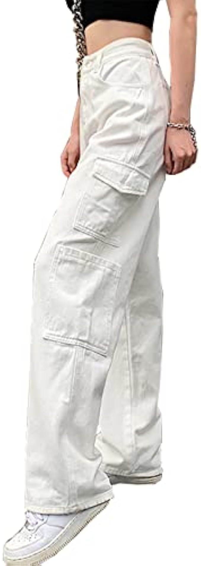 LONGYIDA High Waisted Baggy Jeans for Women Stretch Straight Y2K Wide Leg Denim Pants Casual Cargo Jeans