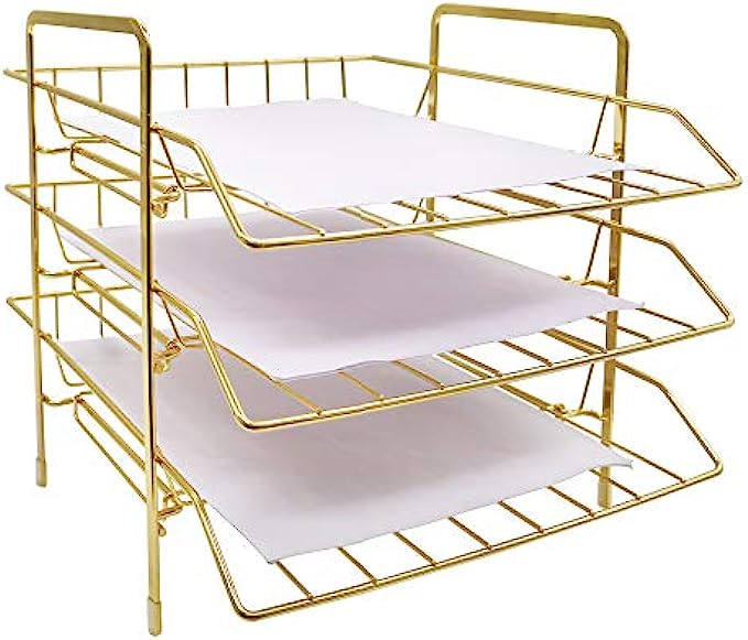 LUCYCAZ Gold Paper Tray - File Organizer for Desk, 3 Tier Letter Tray Desk Gold Supplies for Office and School