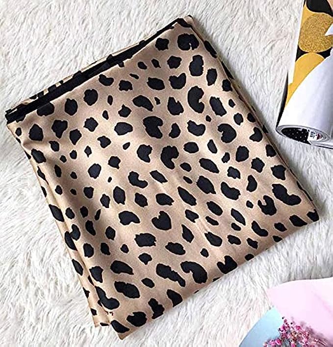 Leopard Skirt for Women Midi Length High Waist Silk Satin Elasticized Cheetah Skirts