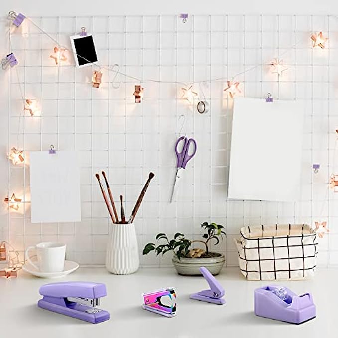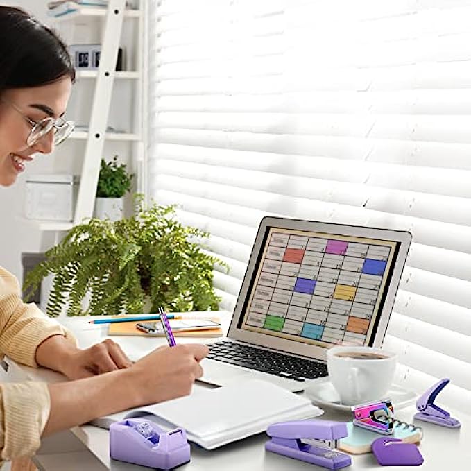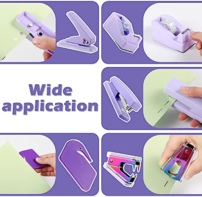 Office Supplies Set Desk Accessory Kit with Stapler Tape Dispenser Staple Remover Staples Hole Puncher Paper Clips Scissor and Letter Opener Ballpoint Pen for Office Clerks Student(Purple)