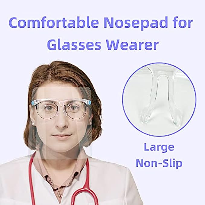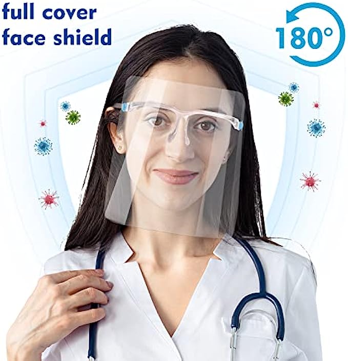 Anti-fog protective full face shield: Safety face shield lightweight & comfortable, The face shield with glasses over glasses have 180 degrees of full-face protection which effectively isolate saliva, spray, splatter, droplet, dust, oil and smoke and so on.