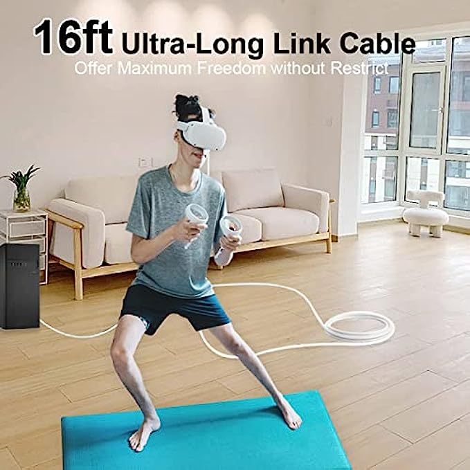 No limits with 16ft cable length: 16ft quest 2 link cable gives you enough freedom of movement without being restricted while immersed in the VR world.