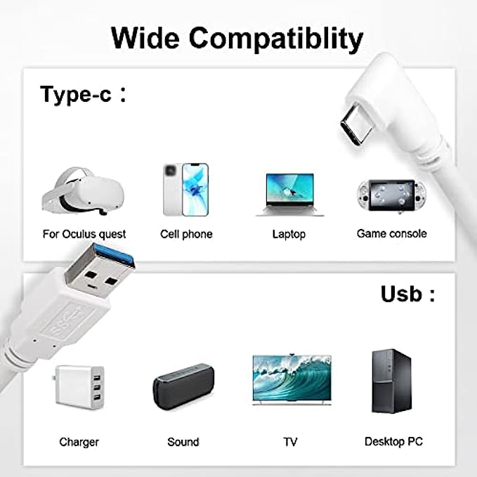 Perfect for Oculus Quest 2: Match quest 2 in color and design, it can perfectly connects the Quest / Quest 2 to the gaming PC, so that you can play all Oculus Rift apps and Steam VR games.