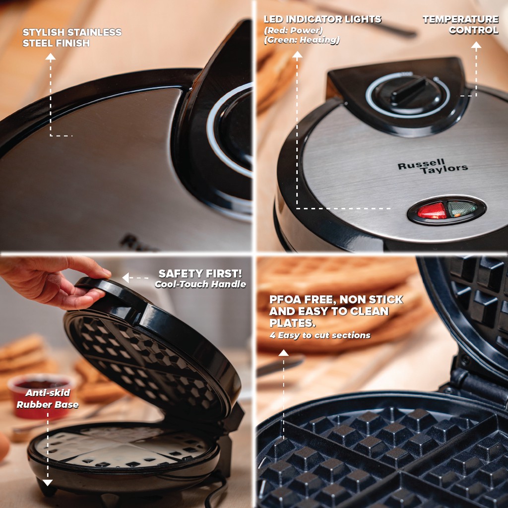 Russell Taylors Belgian Waffle Maker with Temperature Control (Stainless Steel) WM-25
