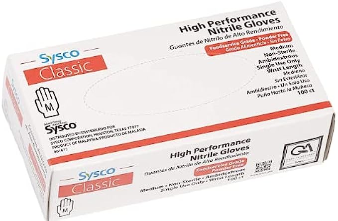 SYSCO(R) High Performance Nitrile Gloves 100 Count (Pack of 1) (Size Medium), Blue, (2306753)