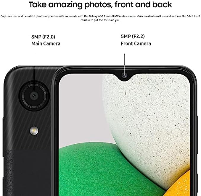 • Rear Camera: 8MP, f/2.0, Digital zoom up to 4x, Front Camera: 5MP, f/2.2, Bluetooth 4.2, MicroUSB 2.0