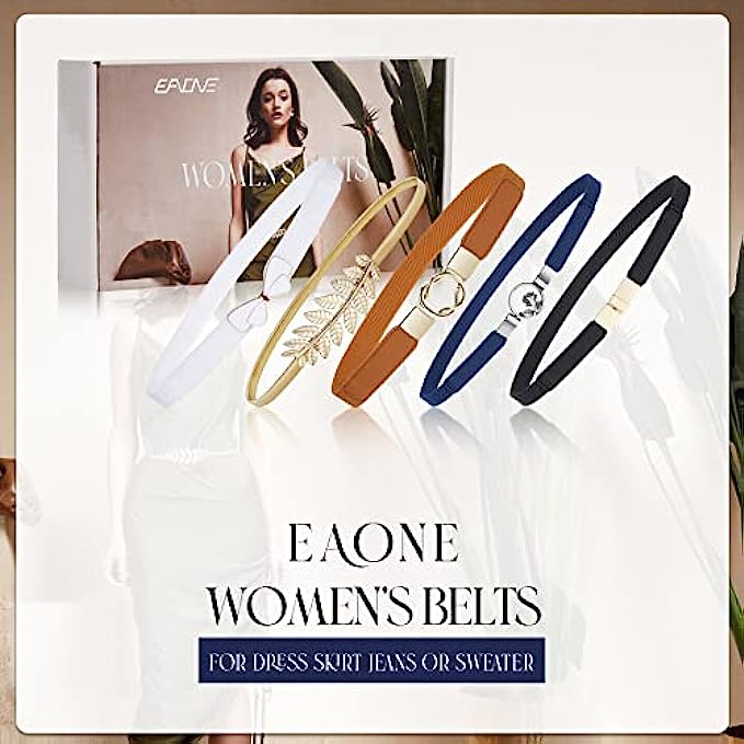 Skinny Belts for Women 5 Pack,EAONE Fashion Dress Belts Stretch Women Waist Belts Plus Size Elastic Waist Band for Dresses