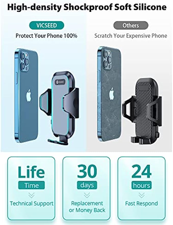 • Perfect Protection: Say goodbye to the easy-scratched plastic panel car mount. VICSEED Upgrade 3 in 1 mobile phone holder for car adds a high-density silicone material with excellent resilience. The car phone holder is covered in a thick layer of silicone that will ensure your mobile device is safe from wear and tear. The unprecedented design makes leaves zero scratches on mobile devices.