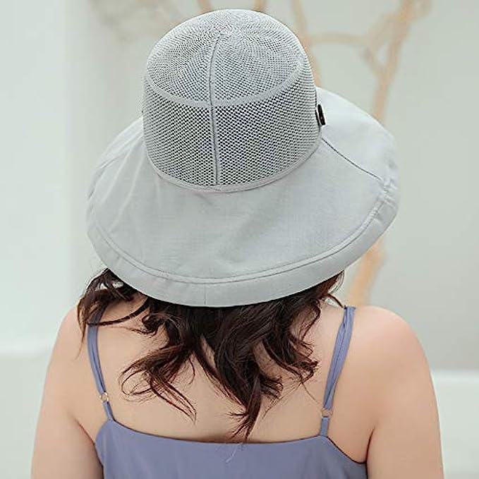 Women Mesh Sun Hats Summer Beach UV Protection UPF Packable Wide Brim Chin Strap